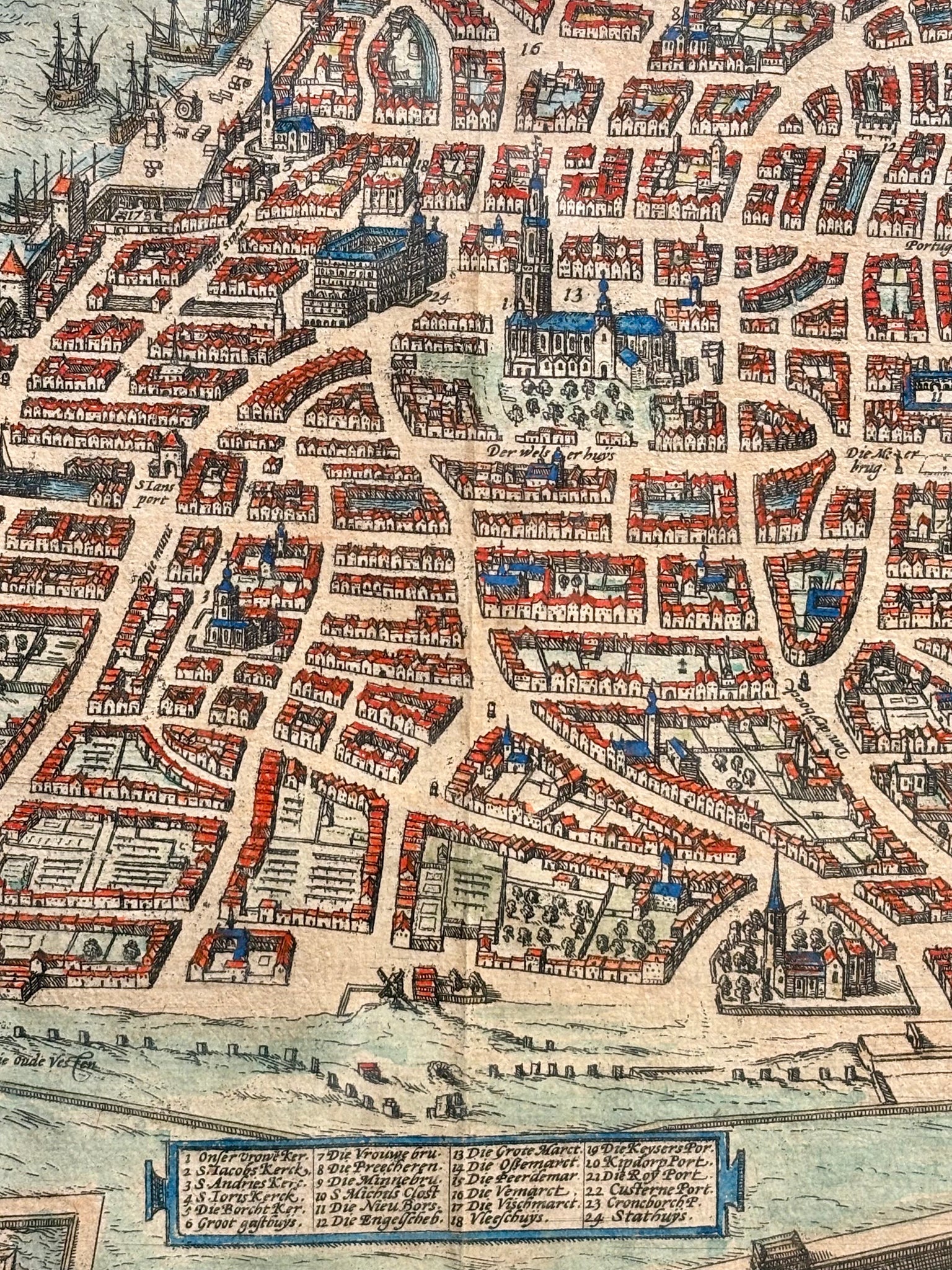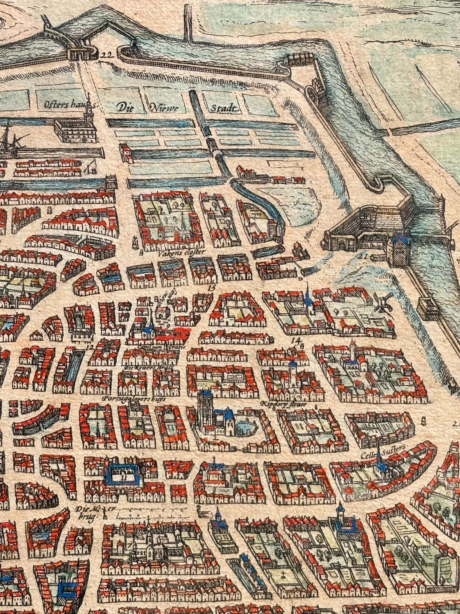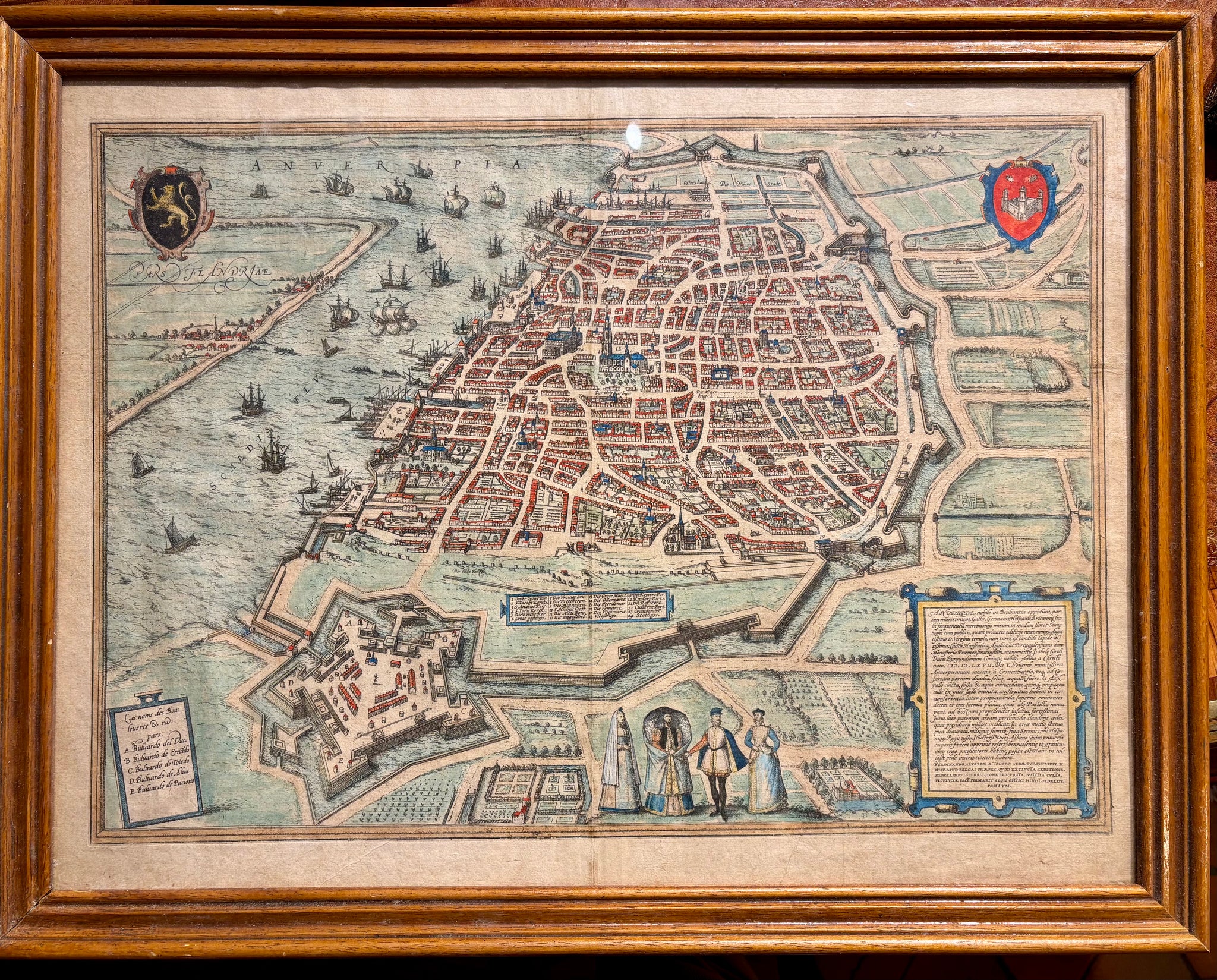 Carte d'Anvers, Gravure réhaussée, Ep XVIIème, d'après Franz Hogenberg , vue 56 x 43,5 cm