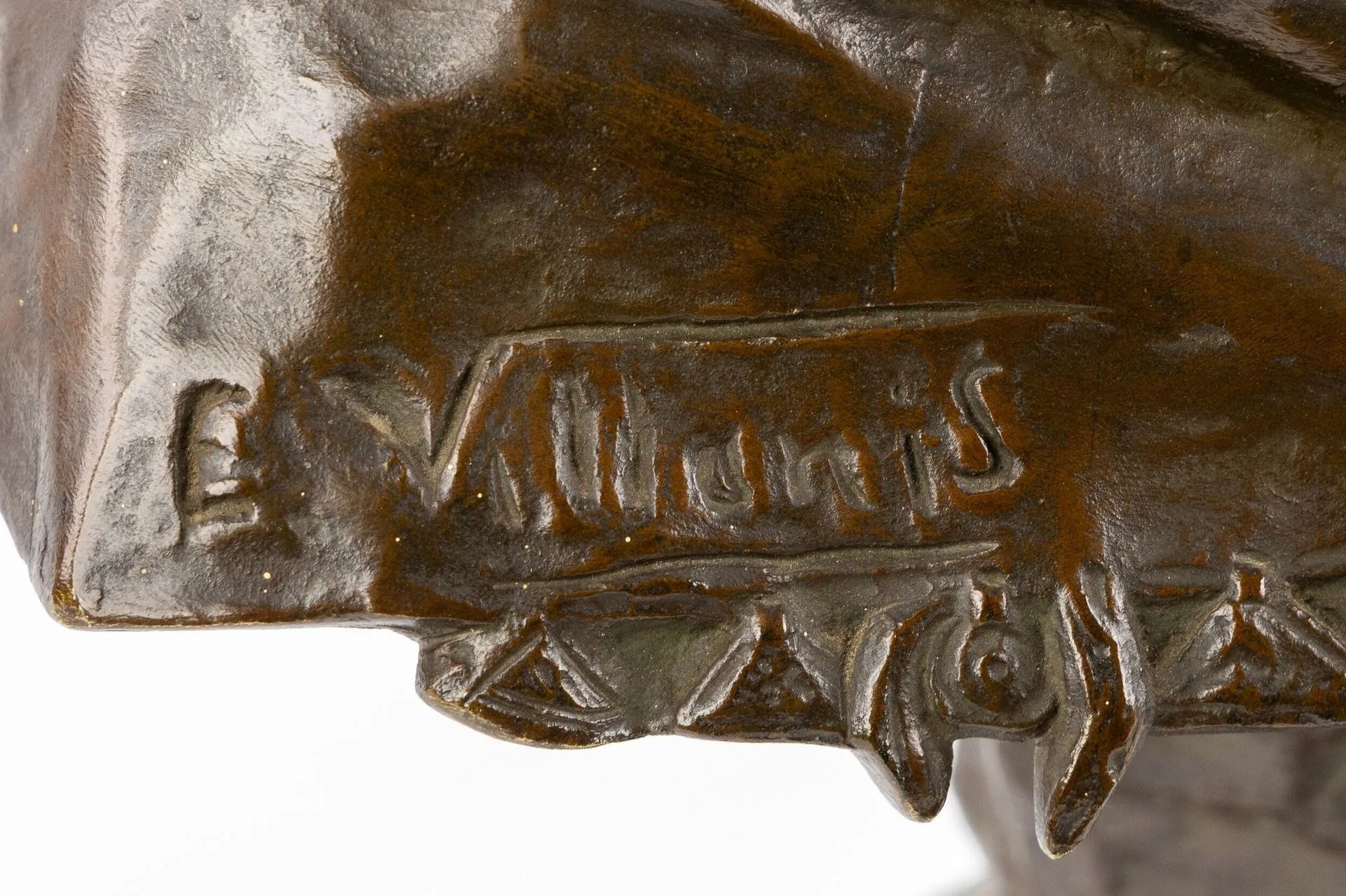 Emmanuel Villanis (1858-1914) 'La Sibylle', bronze patiné. Bronze patiné. La Sibylle, buste de jeune femme. Signé 'E. Villanis'. Cachet de la fonderie 'Société des Bronzes de Paris'. (52x 32 x 23 cm)
