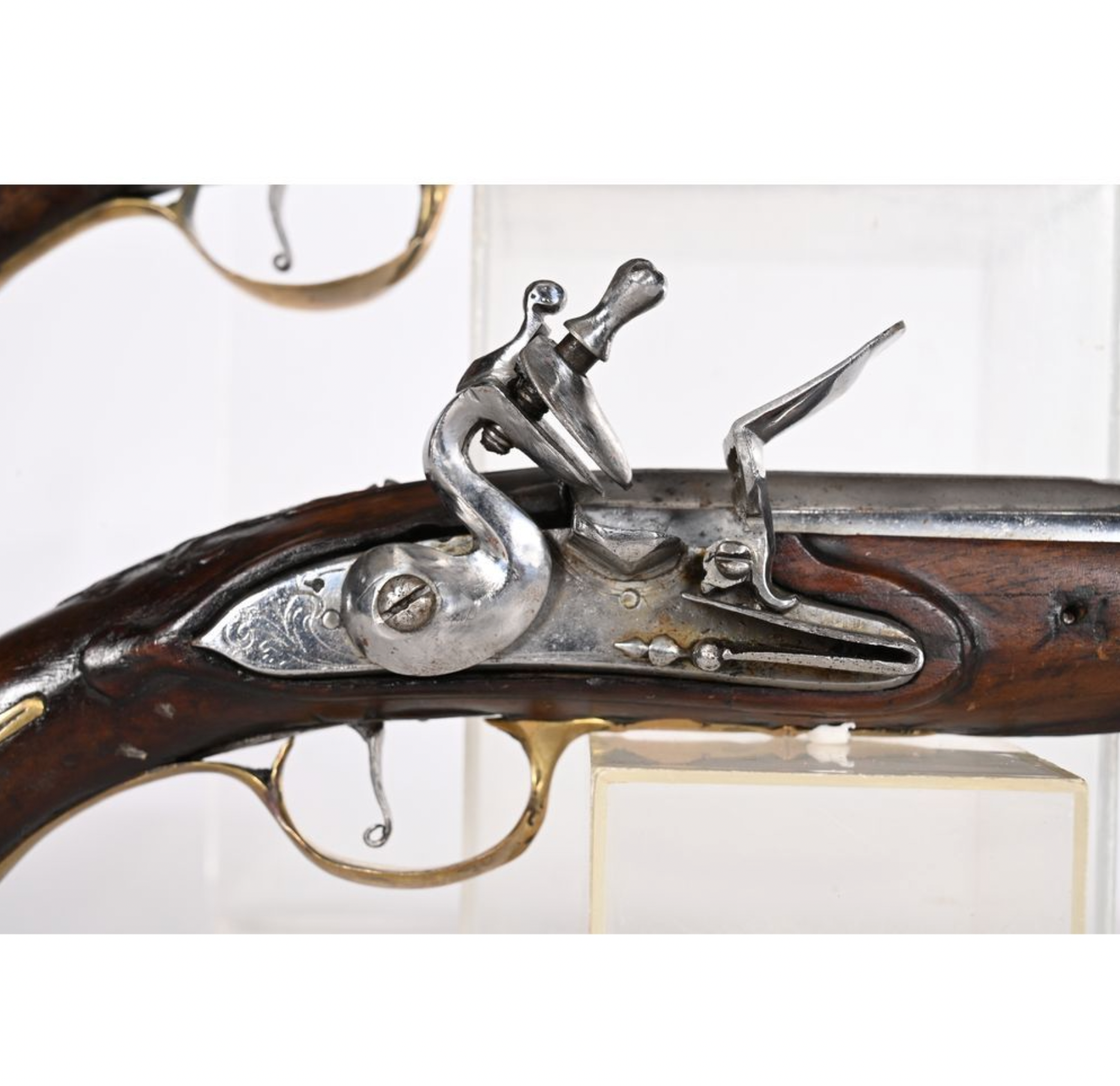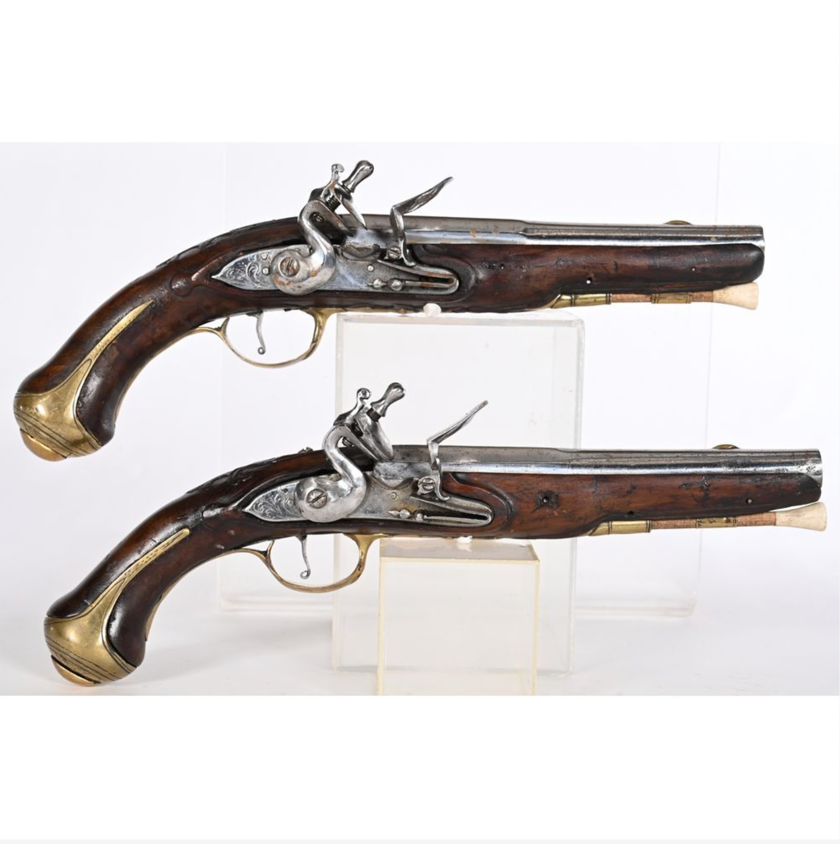 Paire de pistolets Louis XVI. Garniture en laiton. Ep.fin XVIIIè. L.32.