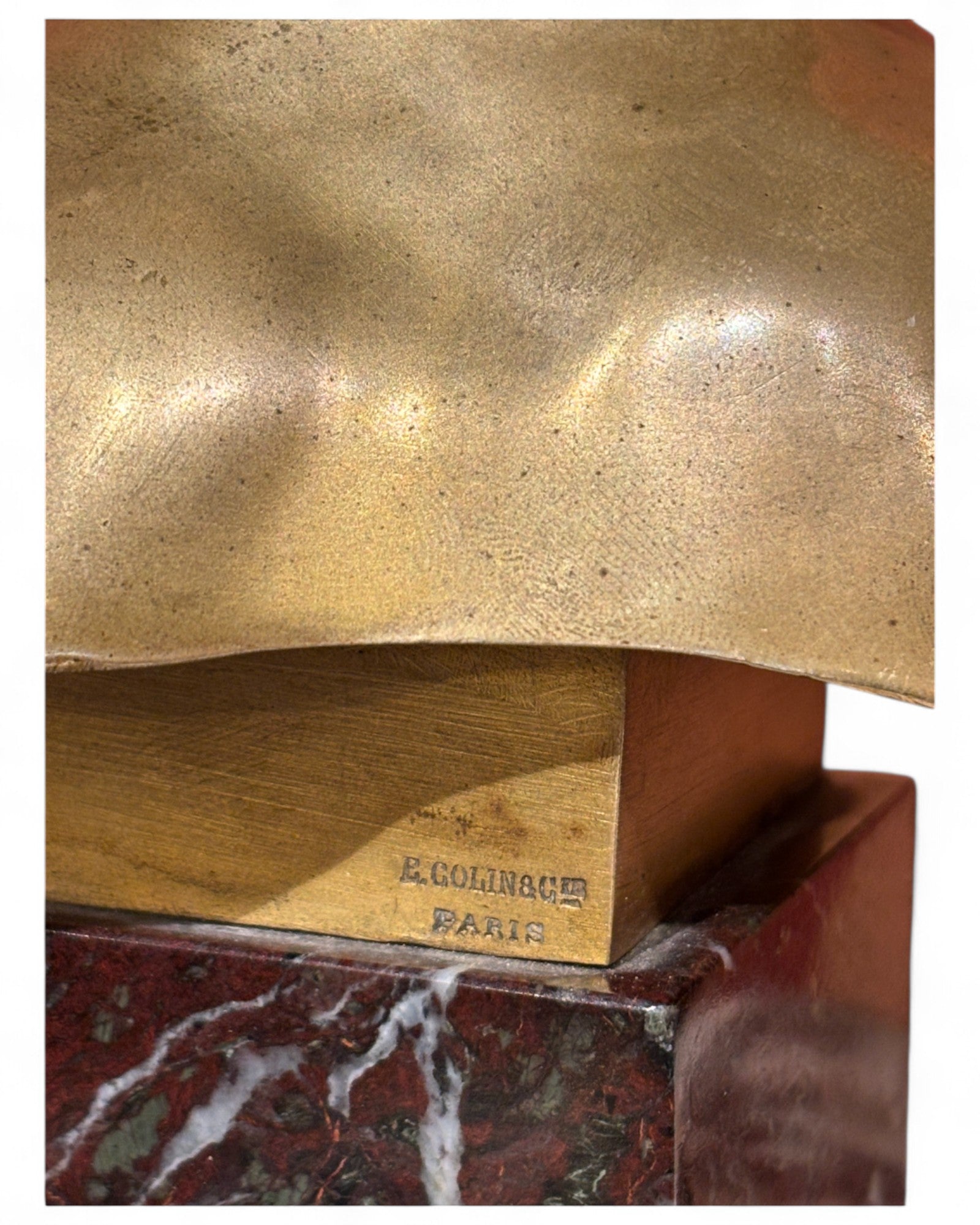 Emmanuel HANNAUX (1855-1934) Buste de jeune romain casqué Bronze doré, signé à l'arrière, Colin fondeur, sur base de marbre veiné. Haut. 22 cm