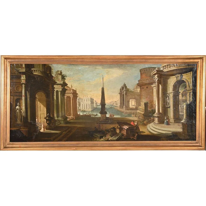 École du XVIIIe siècle - Scène animée aux ruines antiques.