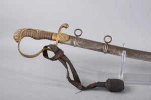Allemagne: Sabre d'artillerie à garde à une branche terminée en tête de lion, poignée filigrannée, lame courbe, fourreau fer à 2 anneaux, fin XIXè
