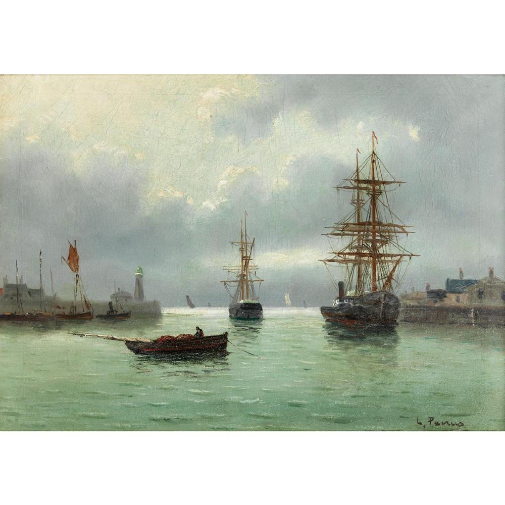 Charles François PECRUS (1826-1907) "Marine sortie du port du Havre", HST. 41x30 cm