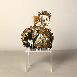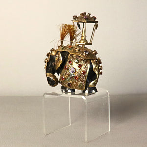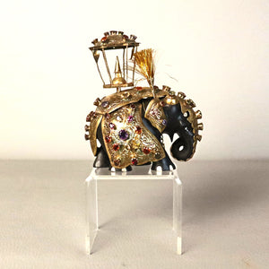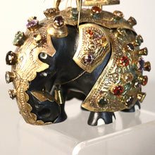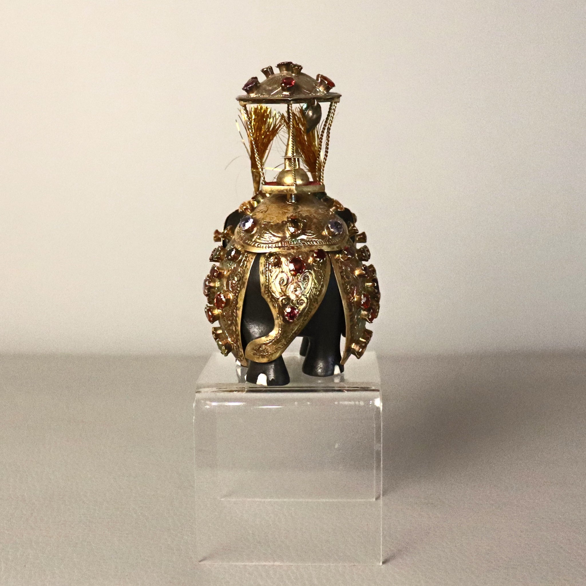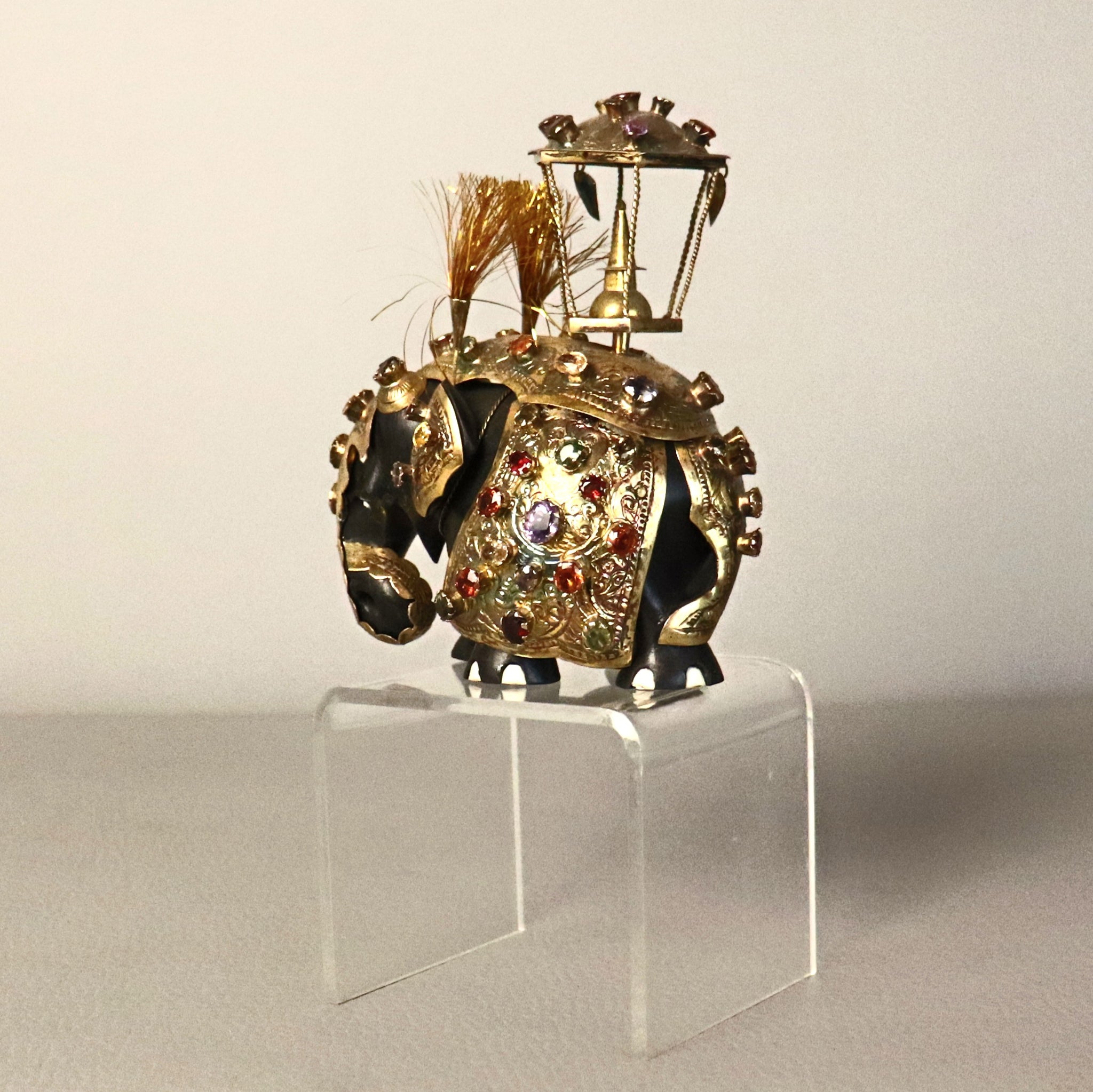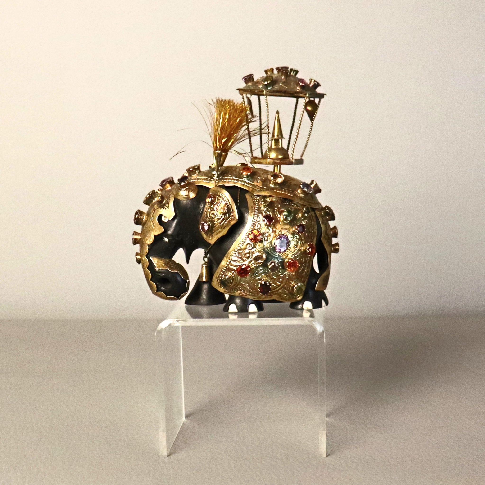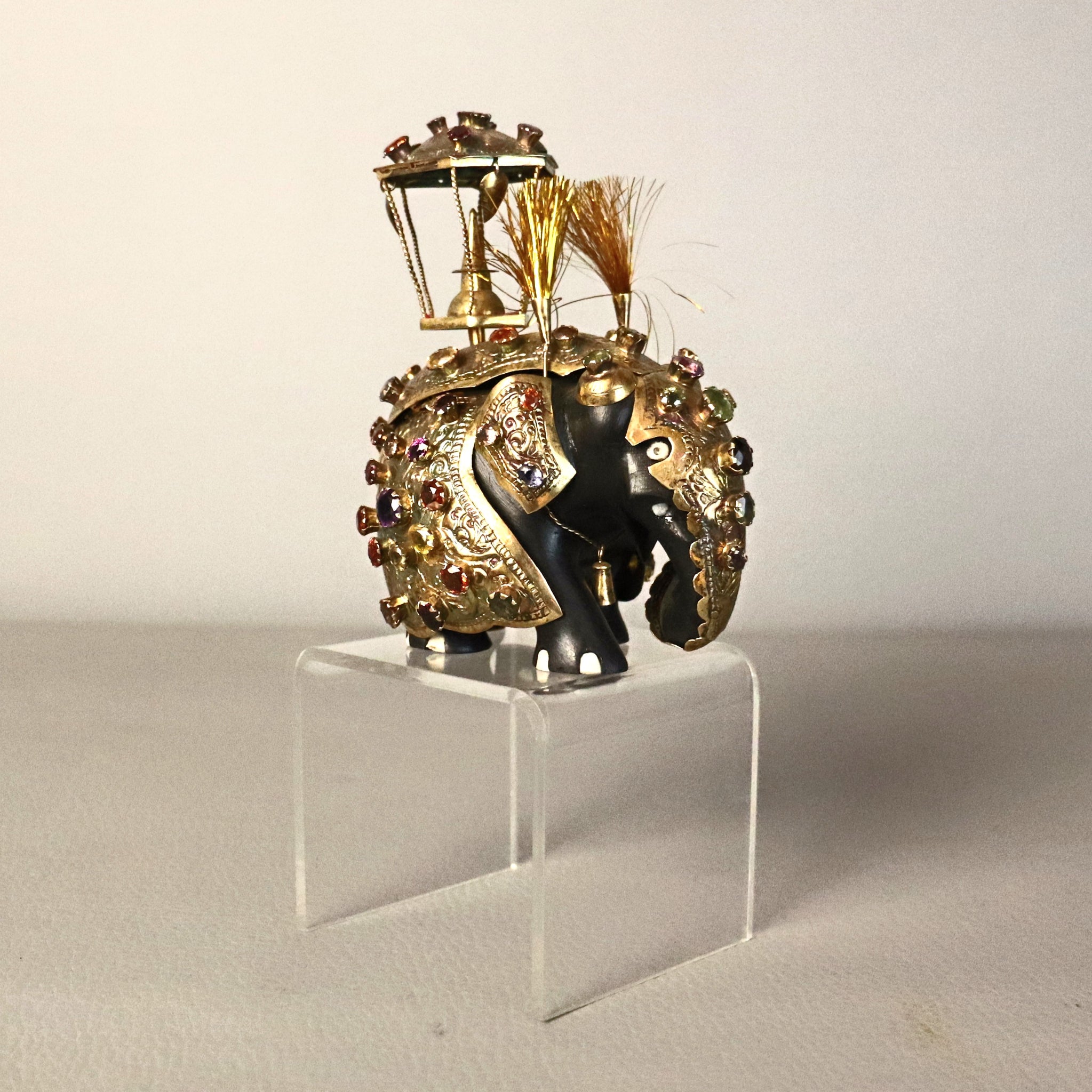 Éléphant de mariage. Inde en ébène caparaçonné de vermeil incrusté de pierres précieuses et semi-précieuses.