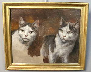Huile sur carton. Monogrammée époque fin XIXe représentant une étude de chats.