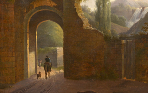 Très belle huile sur toile représentant un paysage animé sur fond de ruines Tivoli (?) Epoque: début XVIIIème.