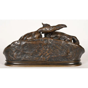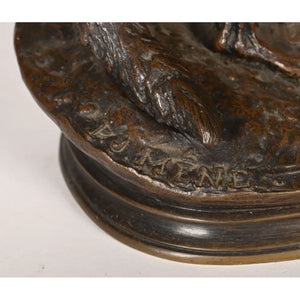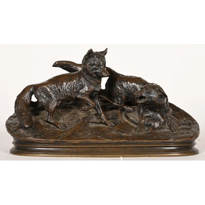 MENE Pierre-Jules. « Les 2 renards sur une terrasse ». Bronze à patine brune. Fonte ancienne. L.32 H.16 P.16.
