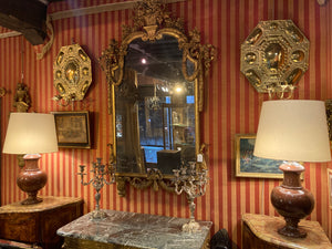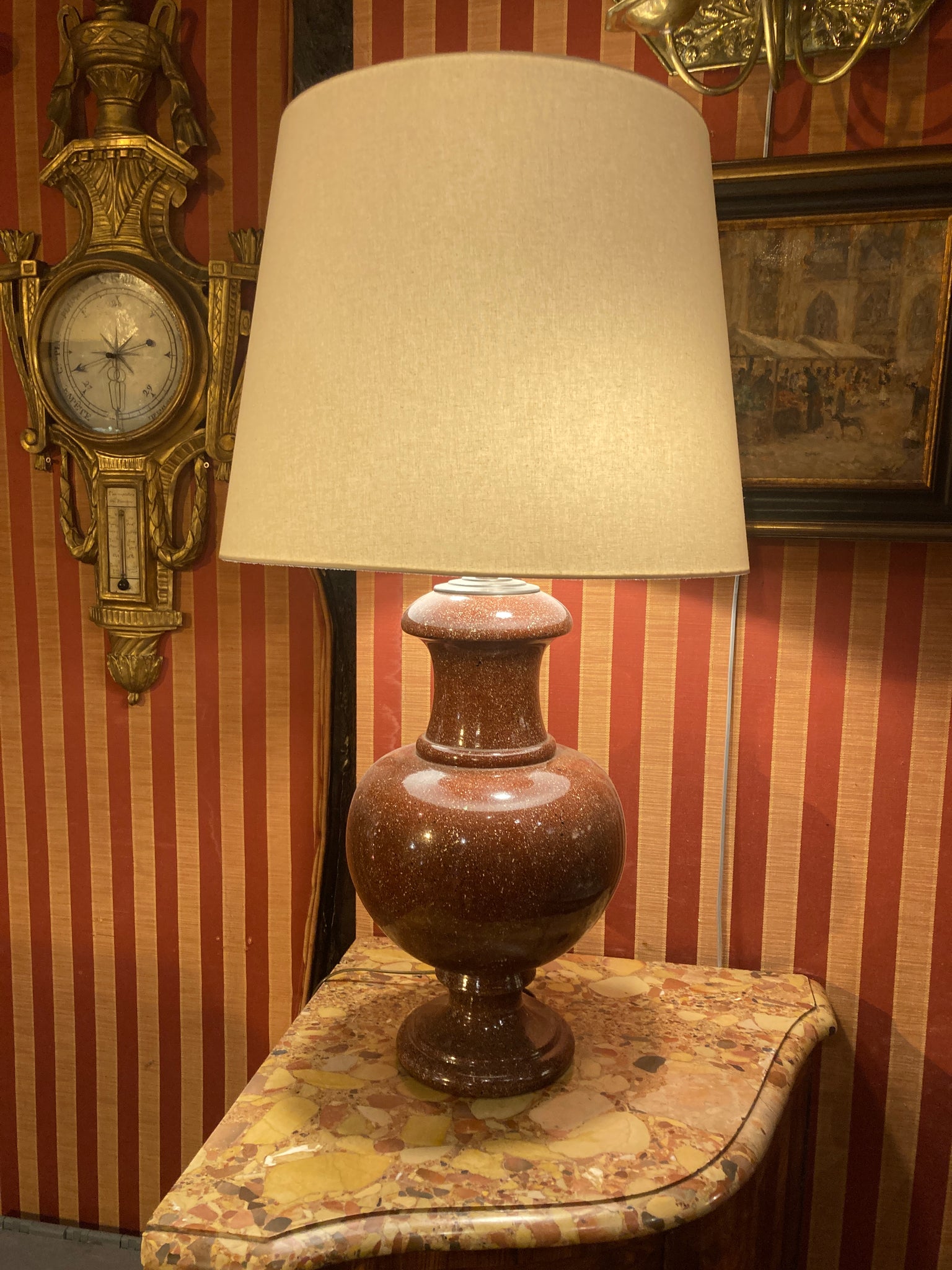 Paire de lampes en porcelaine à l'imitation du porphyre. Signées Jean Roger à Paris. Vers 1950. H. 44 cm