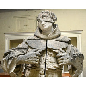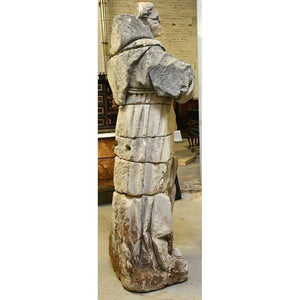 Très importante statue représentant Saint-François d’Assise avec les stigmates en pierre calcaire. Ep.XVIᵉ. H.203 L.86 P.44.