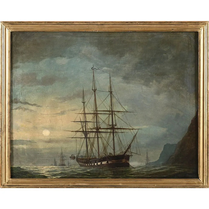 École Française du XIXème, Navires à voile et à vapeur. Huile sur toile