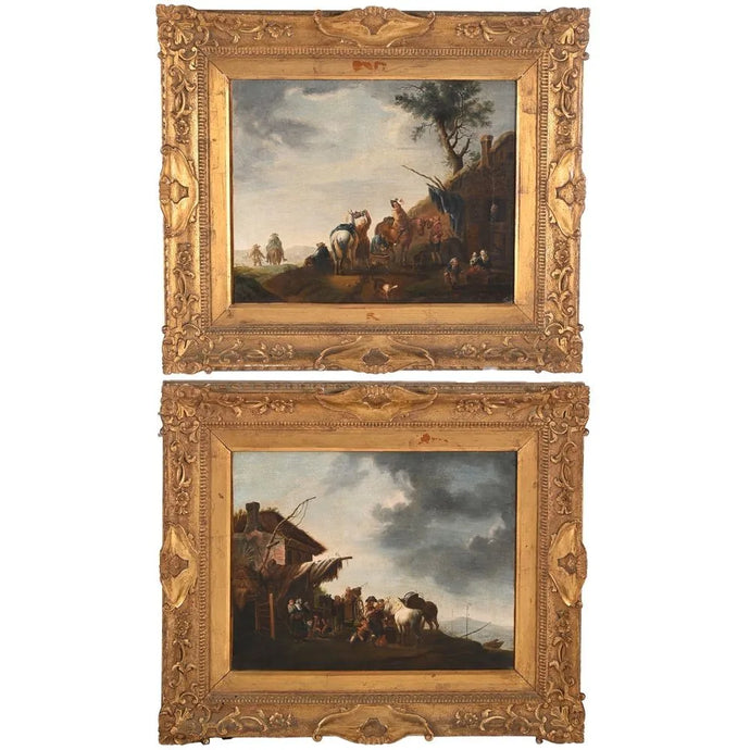 ÉCOLE DU NORD fin XVIIè début XVIIIè. « Paire de scènes animées près de chaumière »