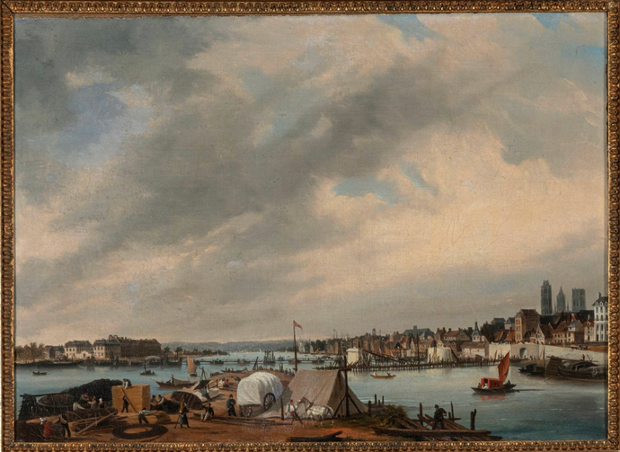 Ecole FRANCAISE du XIXème siècle - Construction du pont de pierre à Rouen (aussi dit pont Corneille)