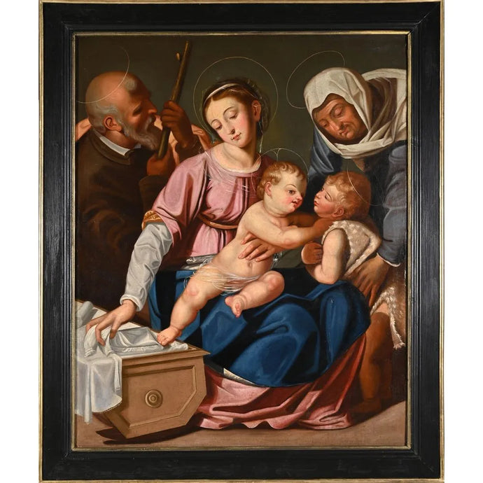 ÉCOLE ITALIENNE du XVIIè. D’après Scipion Pulzone. « La Sainte Famille avec Sainte Anne et Saint Jean ».