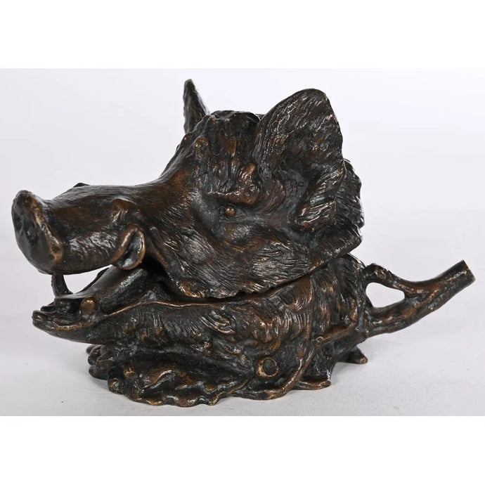 FRATIN Christophe. (1801-1864). Encrier en bronze figurant une tête de sanglier