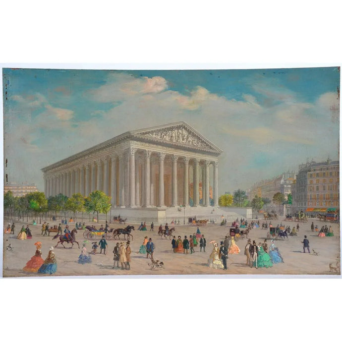 Huile sur cuivre XIXè « Animation autour de la place de la Madeleine »