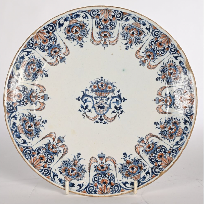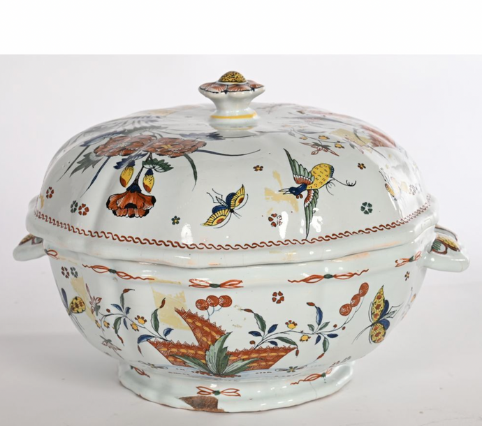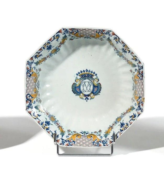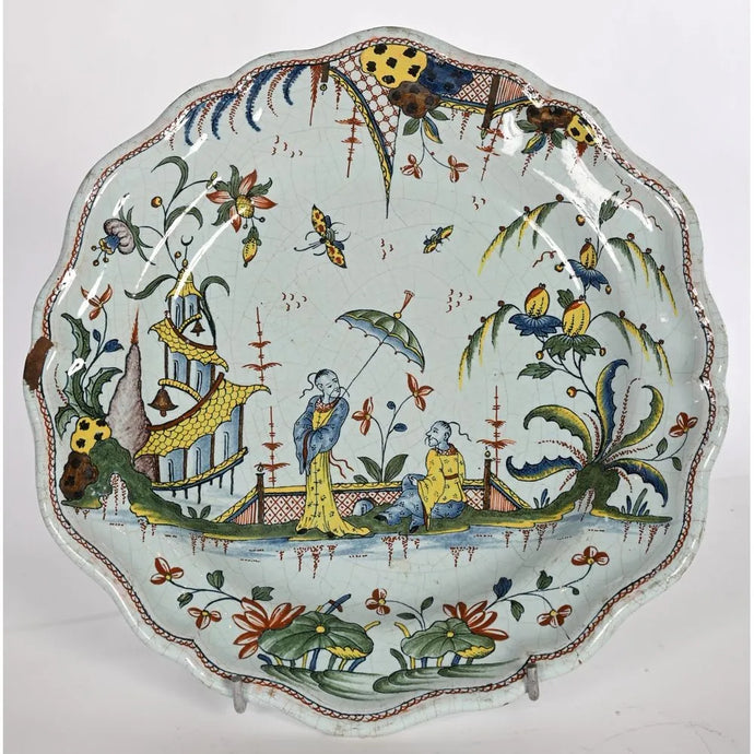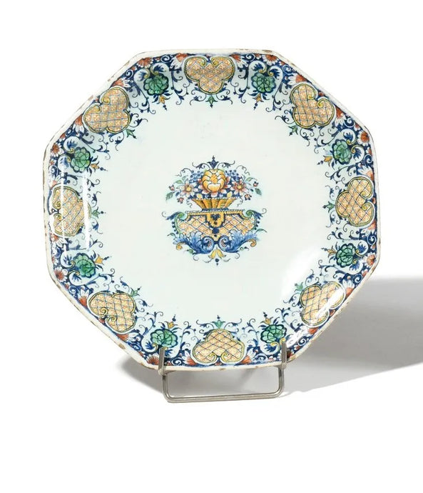 LILLE Assiette en faïence à décor polychrome aux perdrix et fleurs. 18ème siècle.