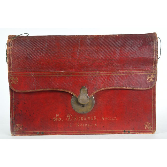 PORTEFEUILLE en maroquin rouge daté 1818 et marqué DEGRANGE