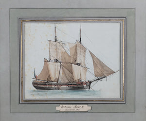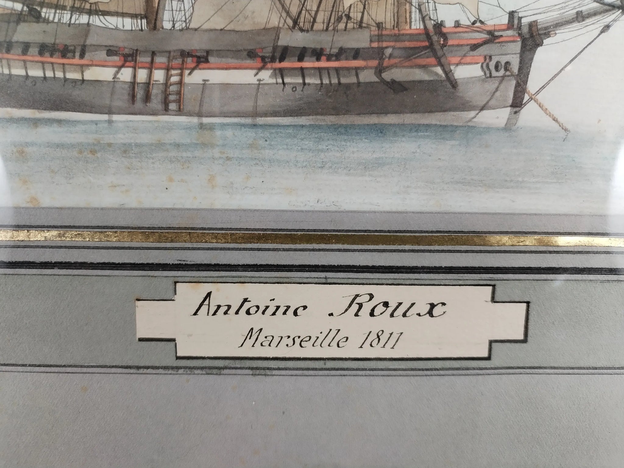 Joseph Ange Antoine ROUX dit Antoine ROUX (1765-1835), aquarelle "Voilier en mer", datée 1811 Marseille, 21 x 26 cm