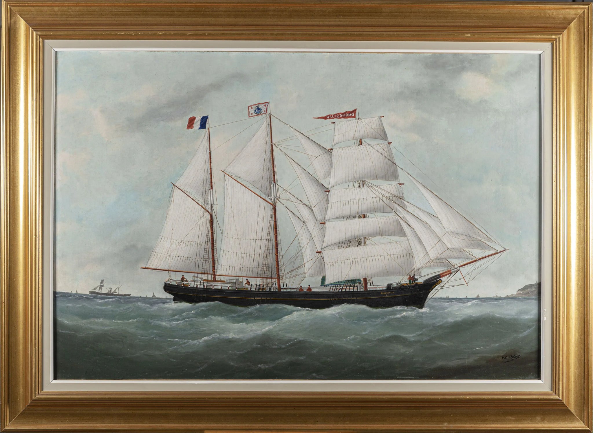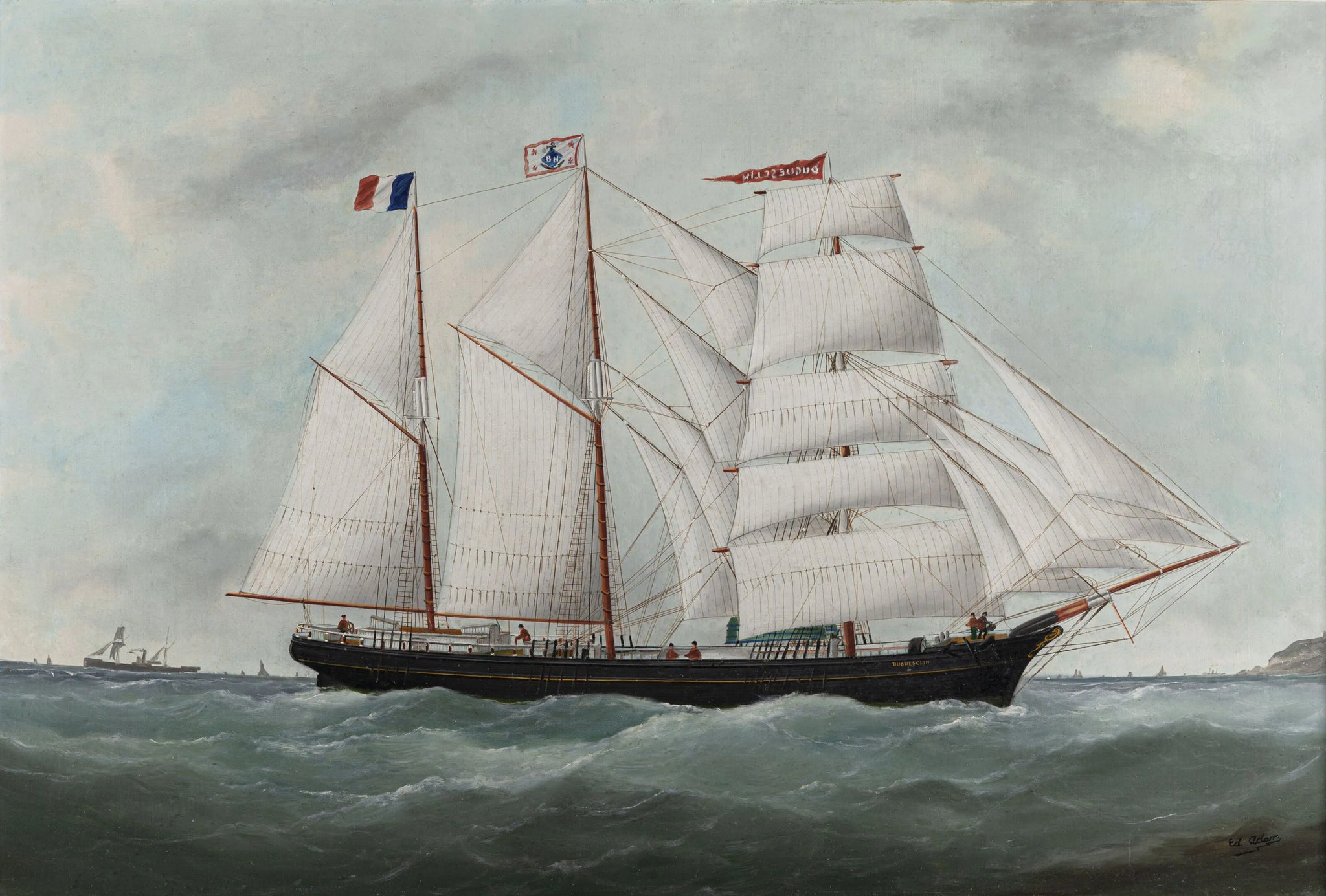 Édouard ADAM (1868 - 1938) Le Duguesclin au large du Havre Huile sur toile signée en bas à droite H. 62 cm L. 92,5 cm