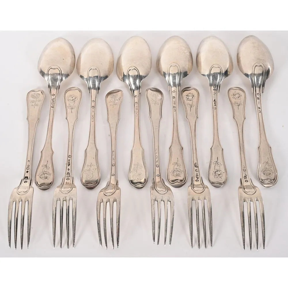 Serie De 6 Couverts en argent massif aux Fermiers Généraux (1775-1777). Douai. M.O. F.M. DUMORTIER.