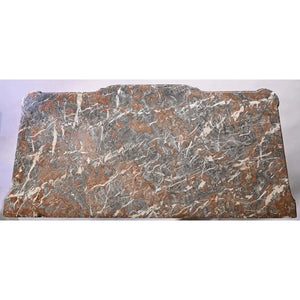Spectaculaire commode d'époque transition estampillée de Bircklé de forme sauteuse à ressaut central et ressaut arrière. Elle est en placage de bois précieux à décor d’une marqueterie à la Reine en perspective avec au centre des quadrifeuilles dans des hexagones et sur les côtés une marqueterie de cubes. Dans la partie haute, un fond de perspective de pilastres sur fond de bois verdi. Elle ouvre par 2 tiroirs sans traverse. Montants arrondis à cannelures simulées. Pieds galbés et facettés. Dessus de marbre rouge, gris, blanc veiné. Estampillée BIRCKLE. Ep.XVIIIè. L.131 P.62 H.87.